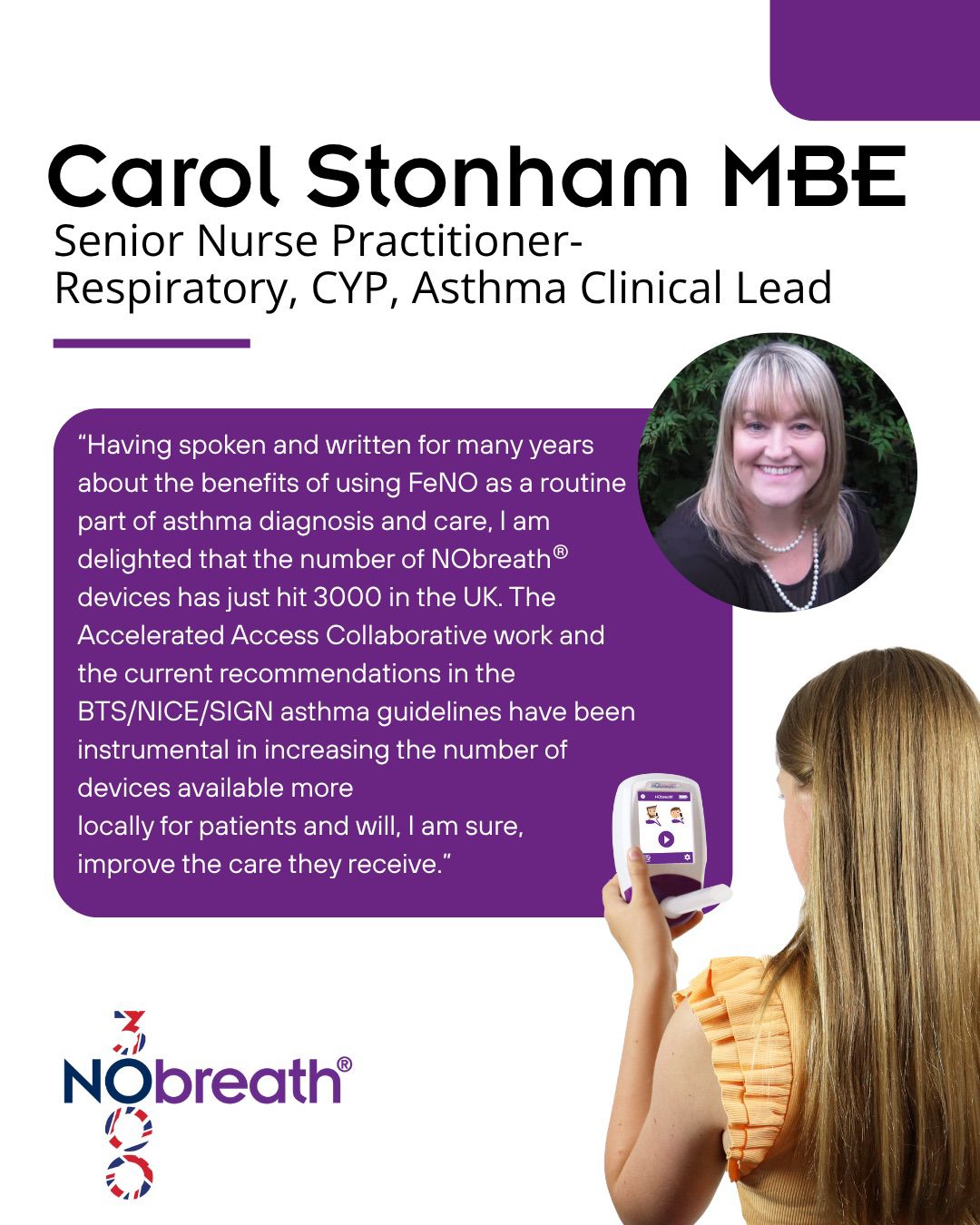 This NObreath® device will enable us to incorporate the objective measurement of airway inflammation into the diagnostic process for patients with suspected asthma. This aligns with the latest NICE and BTS/SIGN guidance, which highlights the importance of FeNO testing in confirming an asthma diagnosis and reducing diagnostic uncertainty avoiding both over- and under-treatment.